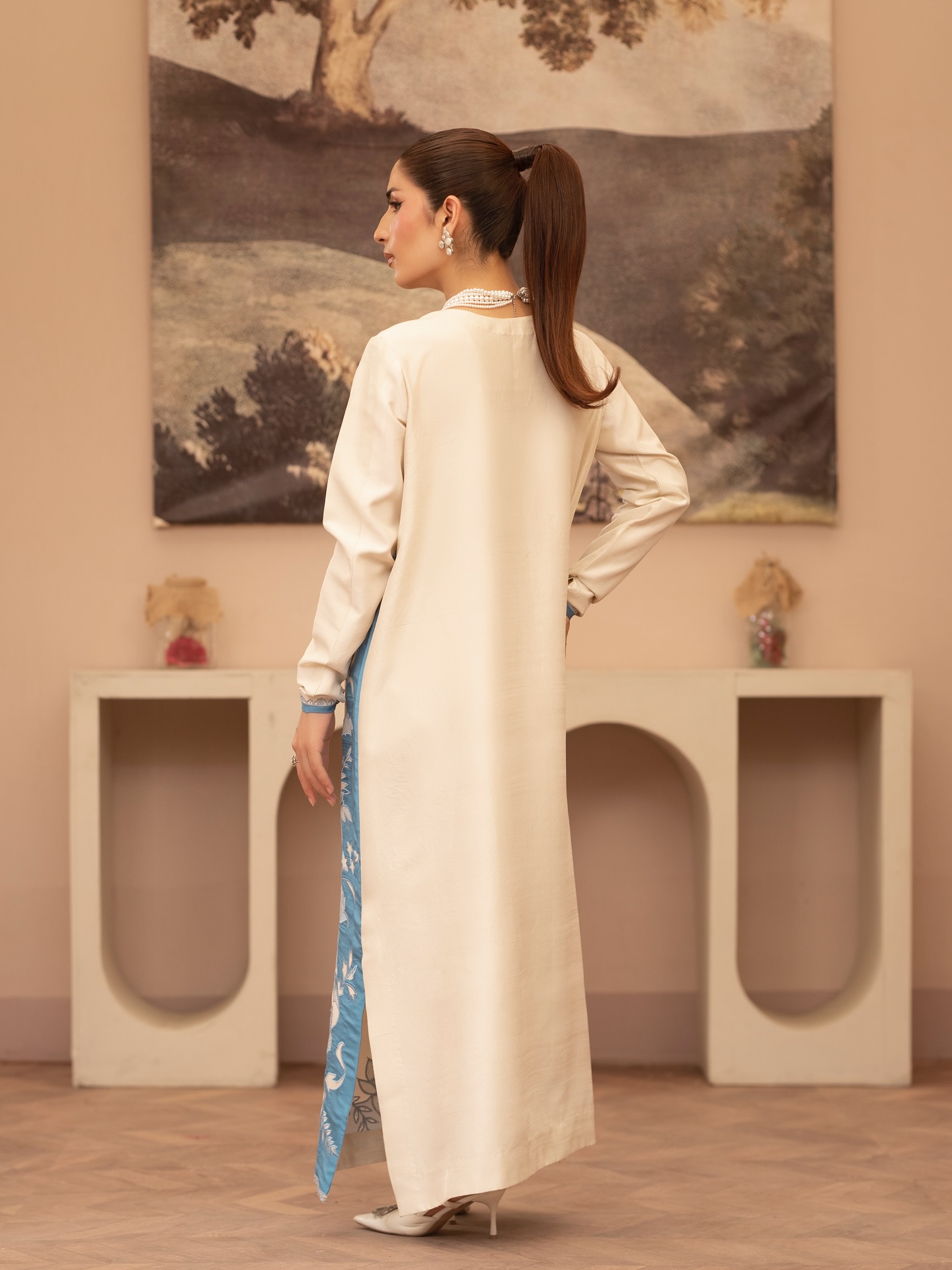 This rich dark purple outfit, tailored from pure tassel silk, is a timeless expression of elegance and grace. The shirt features a 2.5-inch wide embroidery panel running down both sides and the center, adding depth and structure to the silhouette. Sleeves are adorned with intricate floral embroidery and finished with a two-tone organza scalloped border for added charm. The crinkle chiffon dupatta is delicately detailed with embroidered motif sprays and finished with fine lace, creating a look that's both regal and refined. Perfect for formal evenings and festive celebrations.Additional information